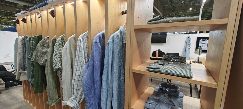 Today, Raymond participates as part of the league of premium global mills. The booth itself reflects this positioning—designed like a boutique retail space rather than a conventional exhibition stand. It presents Raymond Luxury Cotton and Raymond Lifestyle Limited as a single, vertically integrated entity, offering not just fabrics but complete garment solutions.