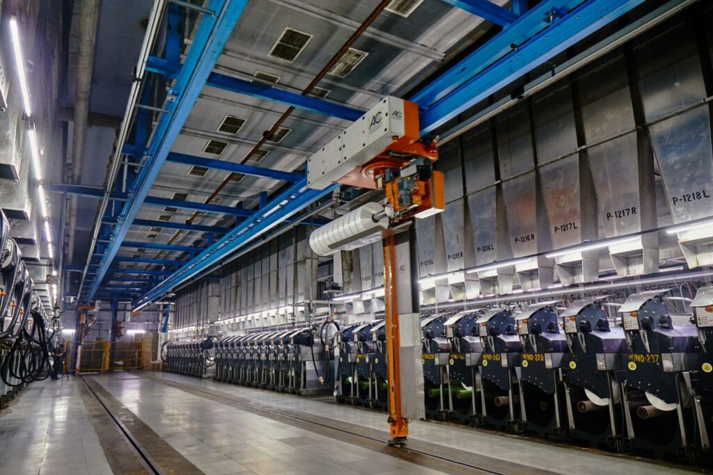 Operational efficiency remains a defining strength. While many textile plants operate at approximately 70% capacity utilisation, Sanathan consistently achieves nearly 96%, reflecting deliberate factory design, high levels of automation, preventive maintenance systems, and production flexibility. Its manufacturing facilities are equipped with advanced machinery from globally recognised technology leaders such as Lakshmi Machine Works Limited, Rieter, Trützschler, Saurer, Aalidhra, and Oerlikon Barmag. This technological ecosystem supports high-speed production, energy efficiency, process safety, and consistent quality across polyester, cotton, and technical yarn segments.
