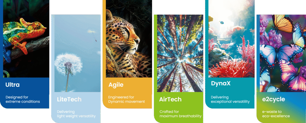 Together, they embody the brand’s vision — “Nature’s brilliance, engineered into performance textiles.”